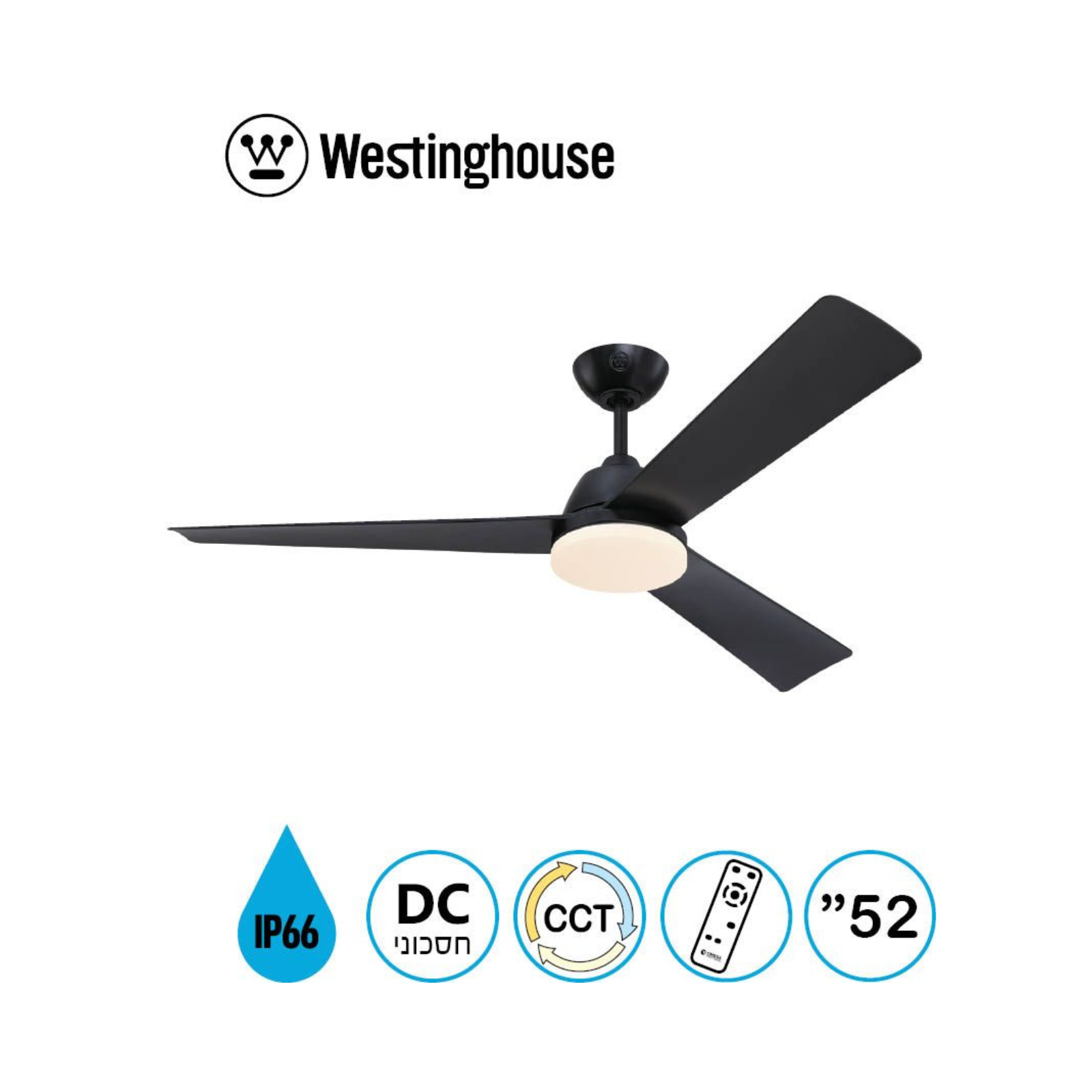 מאוורר תקרה "52 – OCEAN – שלושה להבים – צבע שחור מט, מנוע DC, כולל שלט + תאורה WESTINGHOUSE – 73193-2848 – IP66 – CCT-3 28W