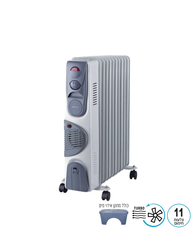 רדיאטור חימום טורבו 11 צלעות, כולל מתקן אידוי מים – HUG TURBO – בצבע קרם/אפור – MATRIX – IP20 – 3000W